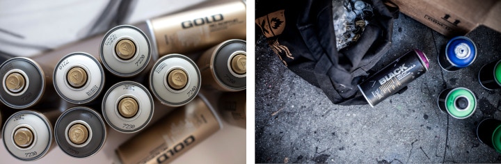 Take your pick from well-loved spray paint brands such as Molotow One4all and Belton, Montana, MTN and Liquitex.