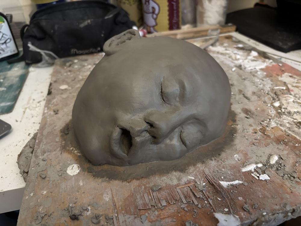 No two studio days are ever quite the same. Some days are very physical, involving mould-making, casting latex or silicone, punching hair, painting, or building up delicate layers of skin tone. Other days are quieter and more reflective, spent writing, researching mythology or trauma theory, sketching, or photographing work. I often move between several sculptures at once, letting processes dry while responding to another piece.