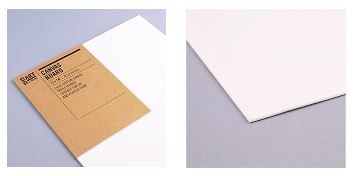 Canvas board is the term used for when a canvas is attached and glued to a rigid surface, in most cases wood. They are wrapped around the board and glued to the reverse, whereas boards have canvas glued to the front only, with shear edges. They are perfect for both quick sketches and more accomplished finished pieces