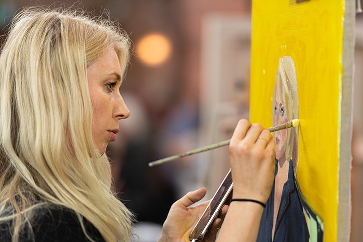 We have our finalists! The three semi-final winners are on their way to the final, and are that one step closer to winning Sky Arts Portrait Artist of the Year 2020. The contestants were tasked with capturing the theatrical legend Elaine Page, in front of a spectacular backdrop with a festoon of lights. Read on to see how each of the finalists found the round, and what they've got coming up next.