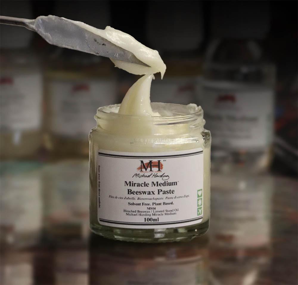 - Build texture and depth – use with a palette knife to layer and sculpt paint, knowing the wax will keep impasto passages stable and prevent sagging over time.
