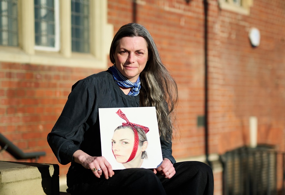 Through my self-portraits I examine different views, angles and perspectives of myself physically, as in, head tilted to the left/right etc, and how I differ visually with each shift in position, but I choose the objects/accessories to not only display how I think about myself but maybe how others, and society especially views me, women, mothers and situates us in a narrative sometimes not of our own choosing. I painted myself with a ribbon around my head, interrogating the idea of adornment and beauty; did this accessory make me more appealing to the viewer and myself? Did it change my perspective, their perspective of me? I explore themes around identity a lot, so I use my self-portraits to explore my own identity and history, creating narrative paintings. Plus I am always here, so it’s a good way to practise and try out different themes and narratives. I am really interested in psychology, anthropology, history and ultimately what it is to be human, so being able to observe myself and work out why I do the things I do, why I look the way I do and what that all means fascinates me.